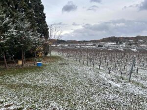 夏はやませの影響により冷涼で、冬は晴天が多い地域です。山から吹き下ろす風は冬が強く、凍害を防ぐために木を藁で囲っています。寒さを超えたたくましい苗からぶどうが実ります。