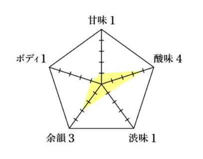 熟したリンゴや柑橘を思わせるフレッシュな香り、しっかりとした酸味の辛口白ワインです。